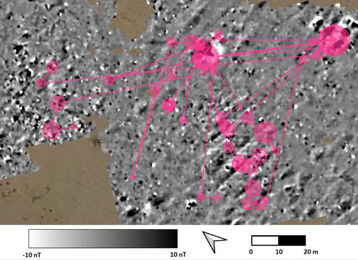 Maps serve as a fundamental platform for communicating research results from experts in geophysical methods to archaeologists. But what is visible in magnetic data to recipients with different levels of knowledge? Can eye-tracking support communication between experts and archaeologists? Our study indicates that experts in magnetometry detected almost 16% more features than archaeologists, and that psychological tools may aid communication among recipients of geophysical data.